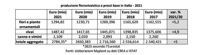 produzioni italiane floricole e vivaistiche nel loro insieme