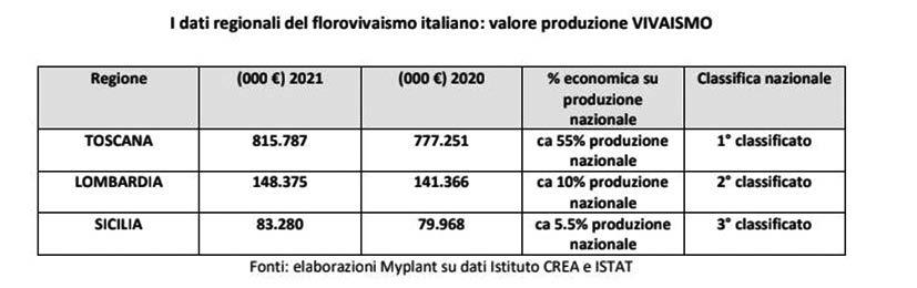I DATI REGIONALI DEL FLOROVIVAISMO ITALIANO: VALORE PRODUZIONE VIVAISMO - TOP 3