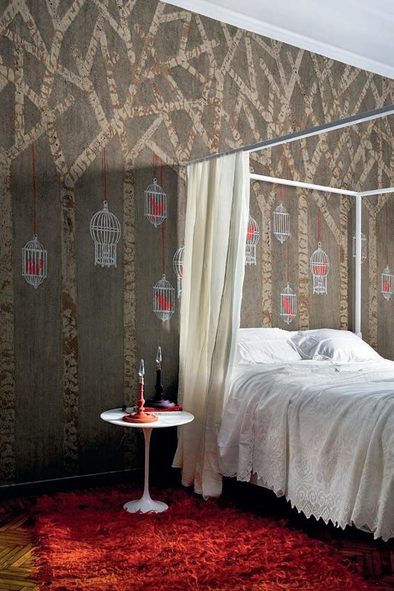 Quindi il primo passaggio è stato dalla grafica alla decorazione murale? Sì, a un certo punto, però, ho avvertito il bisogno di andare in una direzione diversa e ho iniziato a dipingere, per poi capire che la pittura poteva trasformarsi in decorazione. Così per diversi anni ho realizzato, con grande soddisfazione, carte murali: le dipingevo a mano mutuando le tecniche dal mio lavoro precedente; col tempo, ho imparato ad applicarle alle pareti usando la tecnica di posa dei parati. Anche in questo caso usavo i materiali più vari, dalla ruggine alle foglie d’oro.