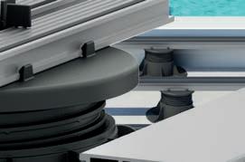 Dual System Evolution è ideale per la posa di pavimentazioni ceramiche, con o senza profilo silenziatore antisdrucciolo ed elemento fuga orientabile 2 o 4 mm e, semplicemente ruotando il travetto di 180°, è utilizzabile anche per la posa di pavimentazioni decking.