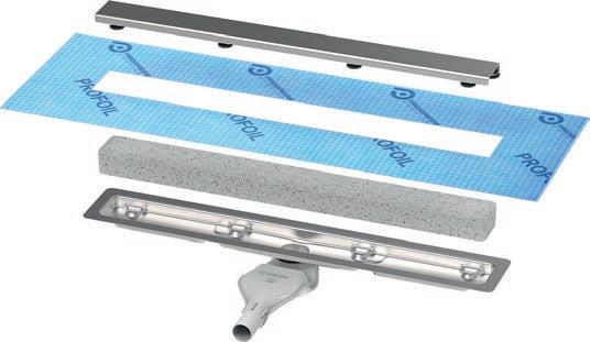 Tra i 21 sistemi brevettati da Progress Profiles (www.progressprofiles.com), Proshower System è ideale per rendere la doccia walk-in un luogo di comfort assoluto. Disponibile nelle versioni Linear e Central, il sistema si compone di diversi elementi: la novità, presentata in fiera, è la nuova canalina di raccolta con sifone orientabile a 360° e facilmente ispezionabile, Proshower Base L Pro. In acciaio inox, è disponibile in diverse lunghezze e viene completata da cinque differenti griglie in acciaio inox. La doppia pendenza interna garantisce il corretto deflusso dell’acqua e ha la possibilità di inserire un filtro ferma capelli. All’interno del corpo canale sono presenti due basi di appoggio con altezze diverse (quelle al livello inferiore sono 6 mm al di sotto di quelle più alte): la presenza di queste basi di supporto permette, semplicemente ruotando la griglia di 180°, di raggiungere una quota più elevata di 6 mm. Nel kit sono presenti anche piedini alettati di altezza complessiva di 17,5 e 27,5 mm che consentono di alzare la griglia sino a un’altezza massima di 25 mm.