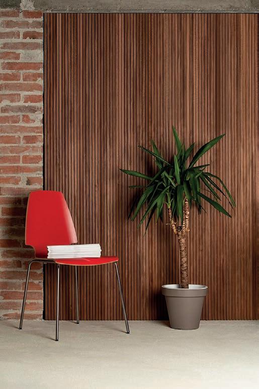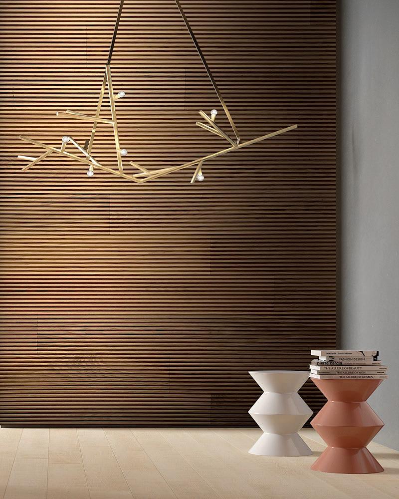 Itlas presenta Le Righe, boiserie in legno per personalizzare le superfici degli ambienti domestici, hospitality e dei luoghi di lavoro. Le Righe è espressione di italianità, sostenibilità e artigianalità. Può essere posata sia verticale che orizzontale, creando effetti ottici che animano le superfici rivestite.