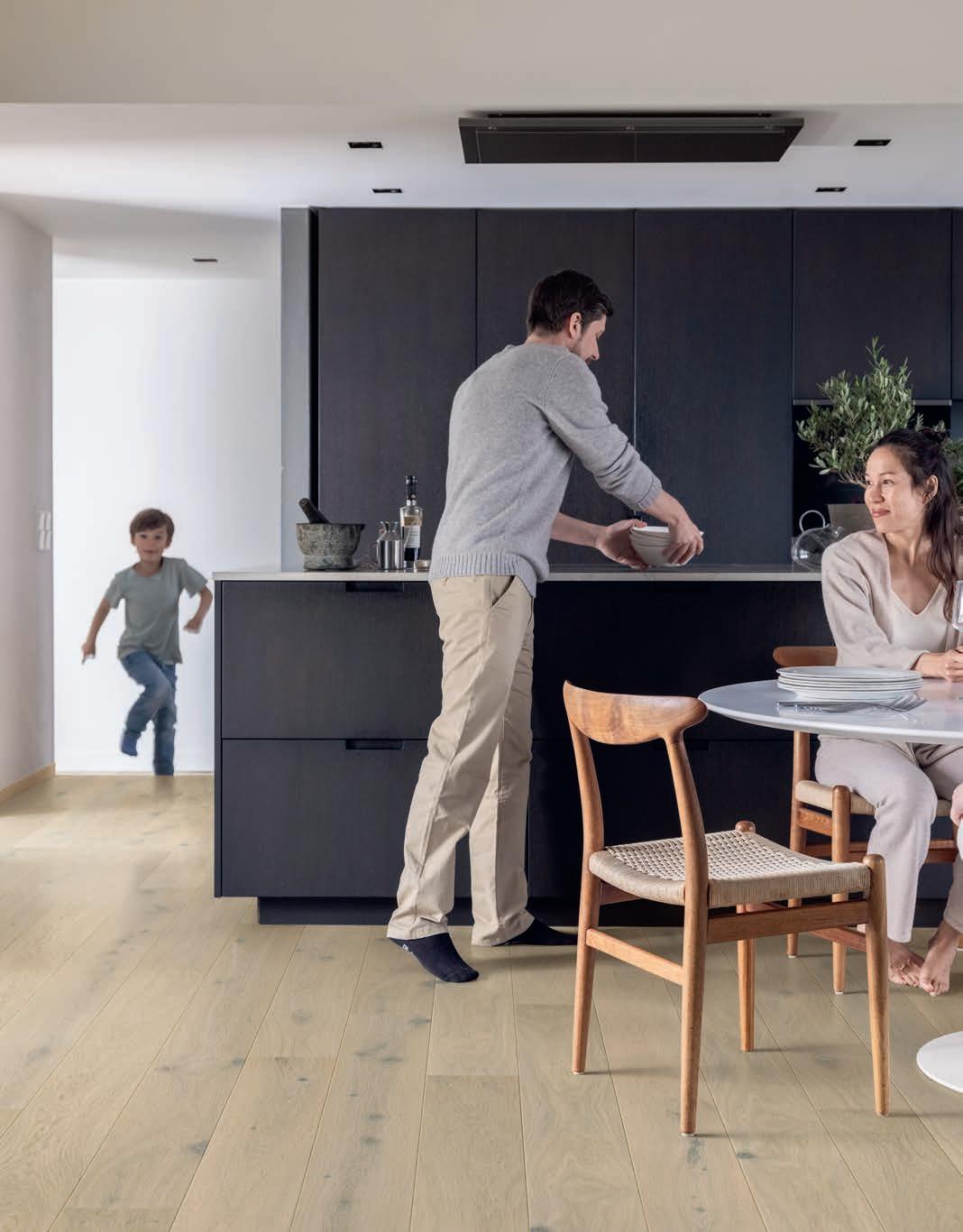 • Incastro Uniclic® e protezione AquaSafe garantiscono la tenuta totale del pavimento: posalo anche in cucina senza più pensieri.