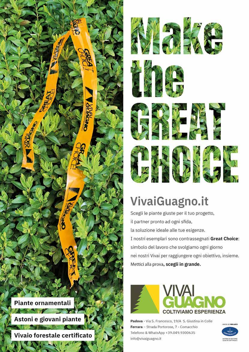 Uno sguardo lungimirante che prosegue tra le pagine della sezione SOLUZIONI (pagina 27) , nella quale vi presentiamo nuovi sistemi di alimentazione allo studio in grado di poter superare i motori a scoppio, anche per cantieri in cui sono richieste maggiori prestazioni, oltre a innovativi prodotti in grado di ottimizzare la gestione dell’acqua negli spazi verdi, tema, anche questo, che il moderno giardiniere non deve più sottovalutare. E poi parliamo di design intelligente, come valido alleato per un approccio al lavoro più smart, e di sistemi digital, innovativi software che forniscono un aiuto concreto nelle diverse fasi di intervento della progettazione, a partire proprio dalla resa visiva del progetto.