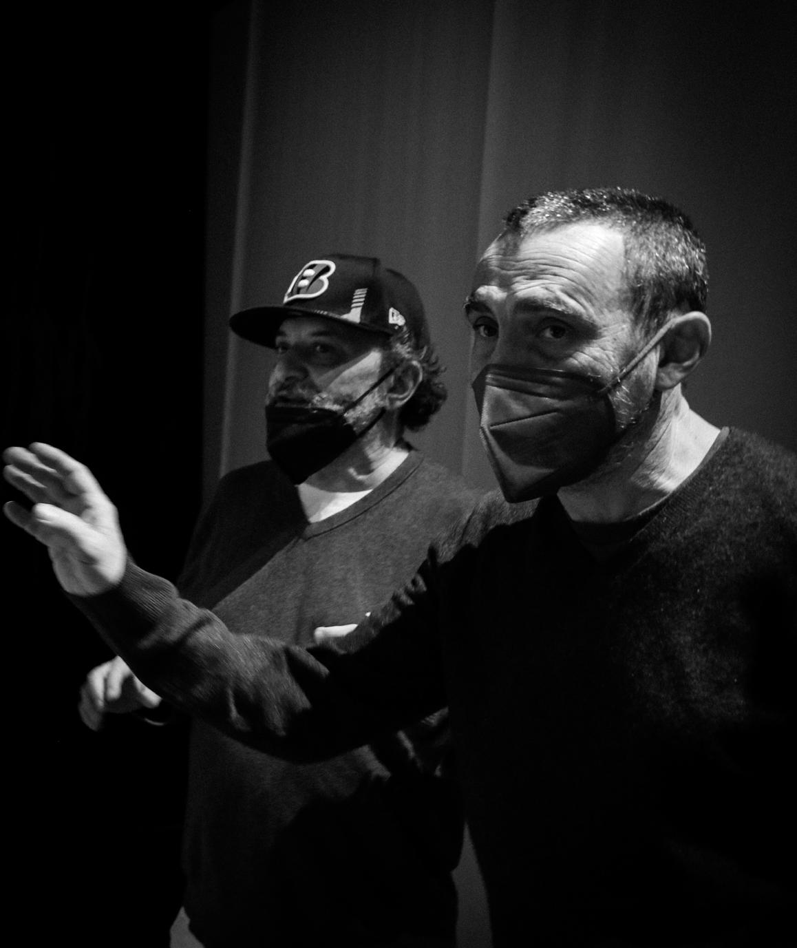 Con mio f iglio Luca e (sullo sfondo) l'organizzatore generale Daniele Spinozzi durante la lettura della sceneggiatura.