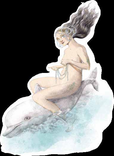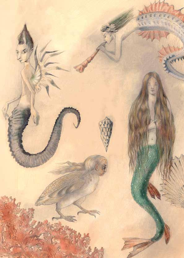 L’acqua, dolce o salta, lacustre, fuviale od oceanica, è l’elemento unifcatore. L’acqua purifca, è alla base del ciclo della vita, anche di quella delle sirene e delle creature che in essa e di essa, vivono. Ma essa può essere anche stagnante, paludosa e celare sirene mostruose che simboleggiano pericoli nascosti.