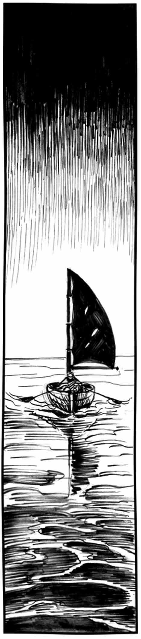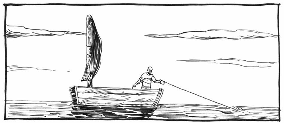 Un aiuto, in questo senso, mi è stato dato dal disegnatore, il bravo Ludovico Lo Cascio, alla sua prima prova su un graphic novel. Con il suo tratto, lineare e giovane (nel senso positivo del termine inteso come ancora incontaminato) ha interpretato la storia nel modo migliore possibile. Vignette pulite, pochi sfondi, segno essenziale, fuoco sempre sul protagonista. Solo le tavole con il grande pesce spada sembrano diventare più articolate e complesse, con un segno che si trasforma come se mostrasse l’altra faccia della medaglia. E complicato è il rapporto che lega Santiago al pesce, nemico/amico e al tempo stesso avversario degno di grande rispetto.