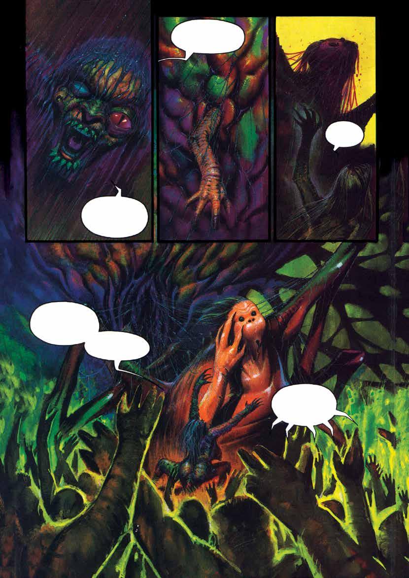 Dove paludi di gangrena si agitano, roboanti rigonfie ribollono di fetido vapore -- e tutto è arrossato dalla sgargiante gradazione di colore del marciume.