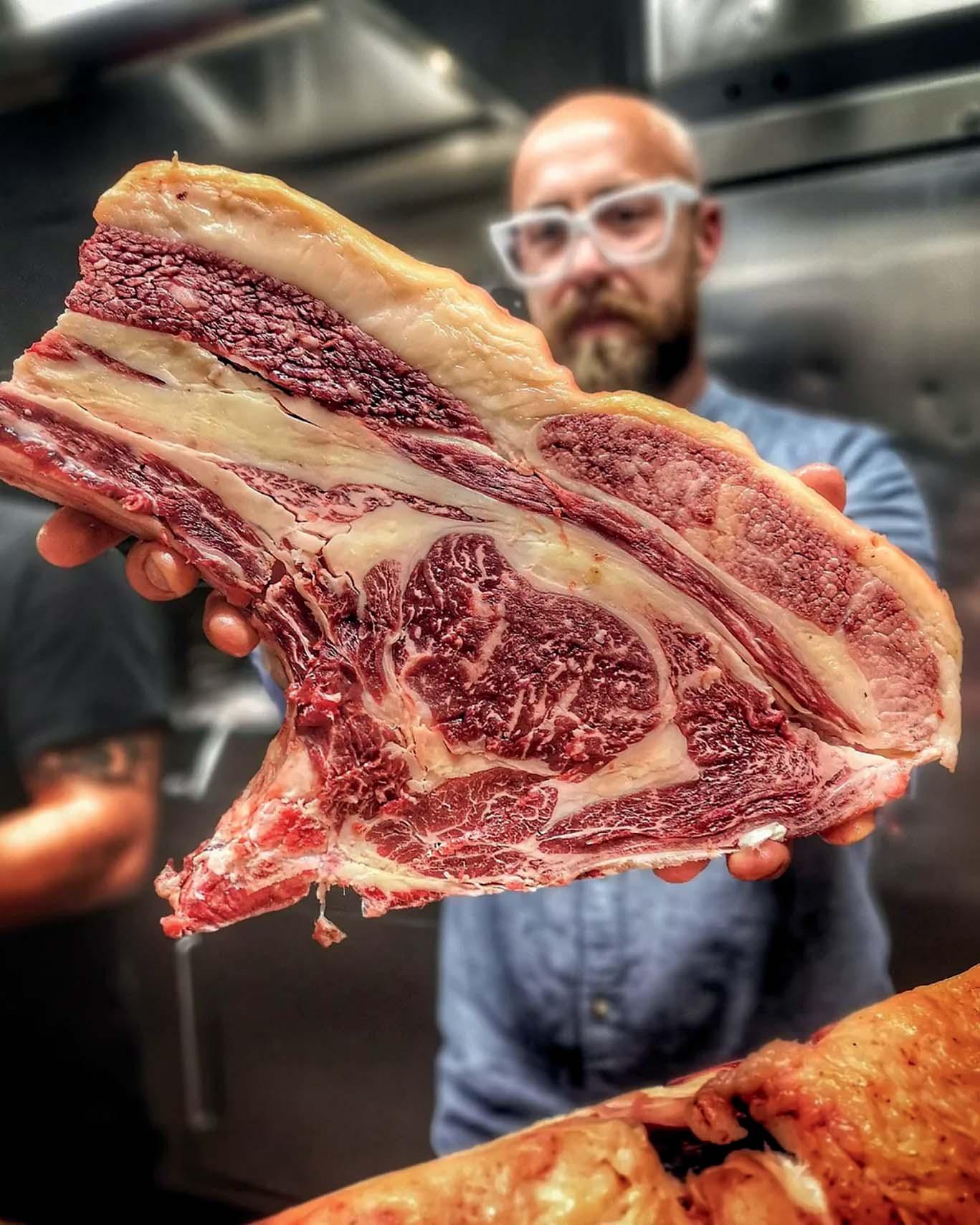 “Un sapore incredibile, un incrocio tra Wagyu e Frisona, allevata e sacrificata in Italia”. Anche questa, soprattutto questa, è Carnivore Essence (photo © @bepperomeoo, facebook.com/bepperomeoo).