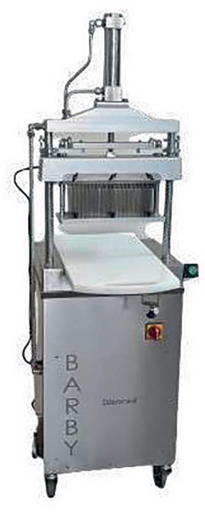 Si tratta di una macchina semiautomatica che permette la lavorazione di qualsiasi taglio carneo. Il sistema di automazione è stato pensato rispettando le norme di sicurezza richieste per questo tipo di macchinario. Nel corso degli anni, inoltre, BARBY è stata migliorata nella dotazione di nuove lame che ossidano meno la carne ed è stata silenziata nella centralina idraulica