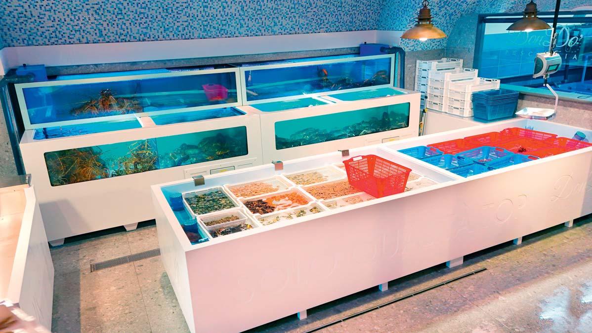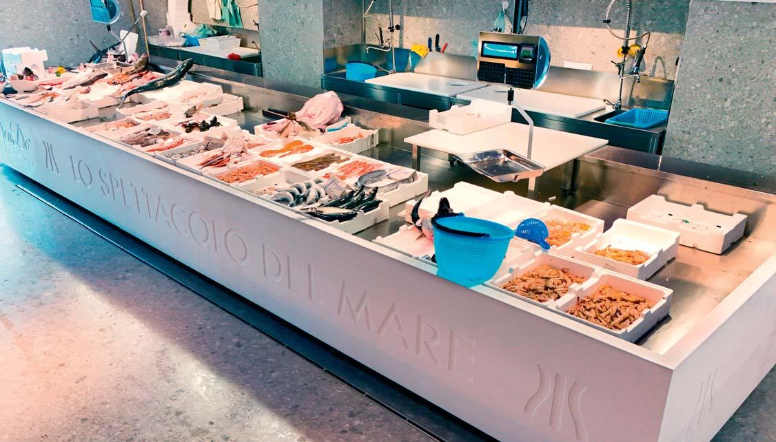 Qui, il banco pesce progettato con cura dall'azienda Adriatic Sea International diventa il palcoscenico su cui si svolge una performance culinaria senza eguali.