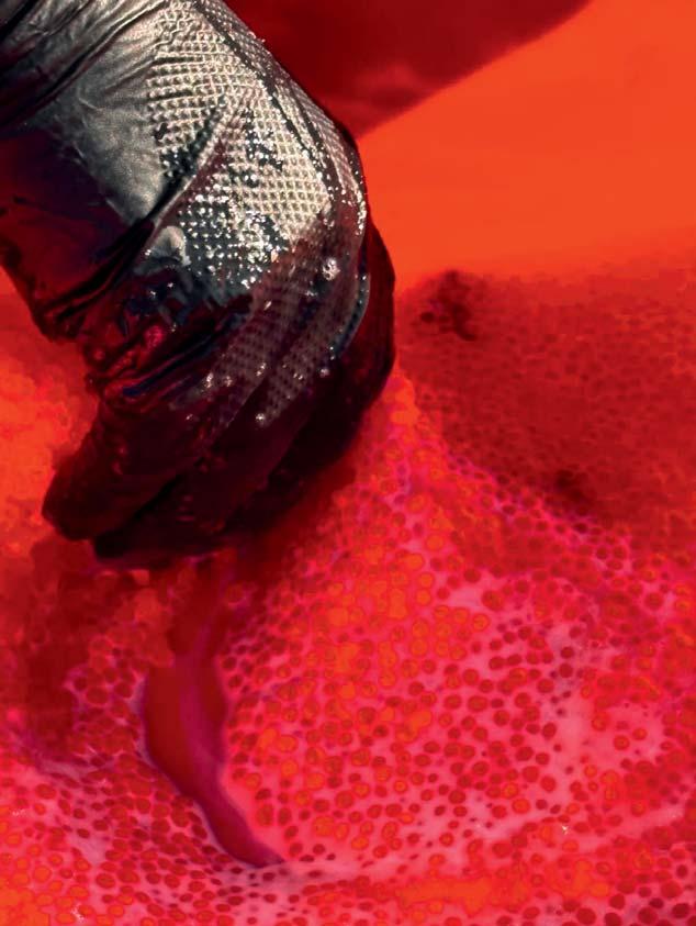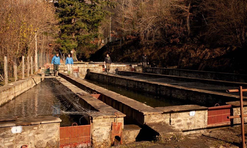 A sinistra: raccolta di uova di trota iridea presso l’impianto della Società Agricola Troticoltura F.lli Leonardi. A destra: fecondazione delle uova mediante aggiunta di sperma.