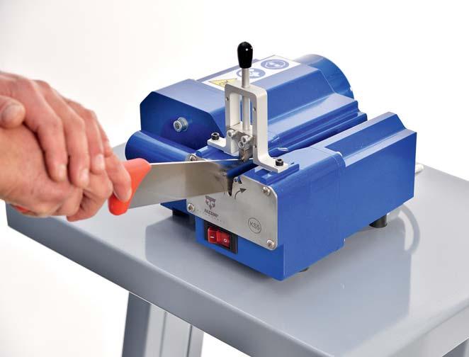 ci, mense, case di cura, aziende agricole, pescherie, supermercati ed industria in genere; • Compact K10: questo modello permette di affilare coltelli. Progettata per lavorare con frequenza, è consigliata per aziende con volume di attività medio/alto come ristoranti medio/grandi, catering, comunità, macellerie, salumifici, aziende agricole, mense, case di cura, industria alimentare, laboratori affilatura e industria.