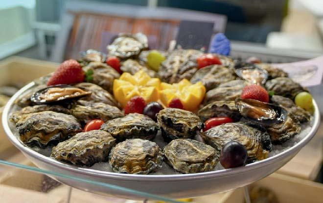 Sotto la luce soffusa dei portici, gli ospiti possono deliziarsi con le più fresche ostriche.