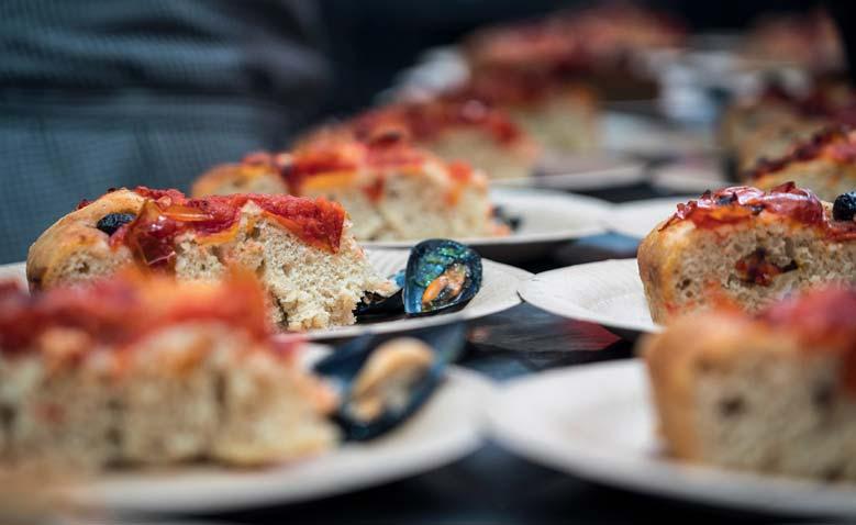 La zona dedicata al crudo è un vero e proprio streetfood sotto i portici di Padova, dove ostriche, gamberi rossi e scampi vengono trasformati in autentiche opere d'arte culinaria.