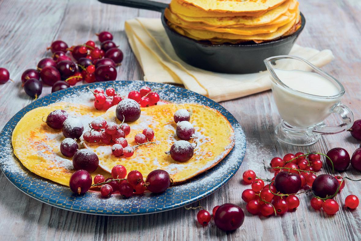 1 Frulla lo yogurt con la stevia e metà dei frutti di bosco appena tolti dal freezer. Unisci la quinoa sof ata (meno un cucchiaio) e mescola delicatamente.