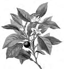 Albero sempreverde dalla corteccia chiara,con foglie lanceolate verde brillante dal forte odore di limone.