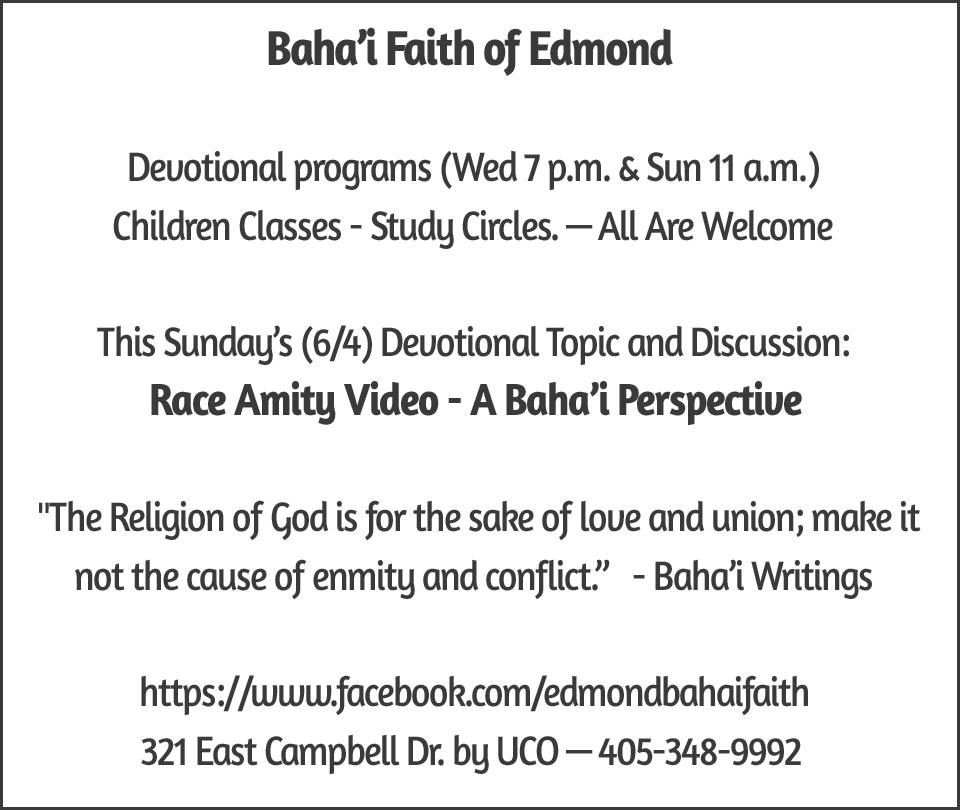 Edmond Life & Leisure • June 1, 2023 • Page 19 In light of COVID 19 for the time being, some worship services may be suspended or online. Please check with your house of worship for more information. Pleease check with servi CO h your house o ces su OVID 19 for the m uspended on e s more informati nline. ion.