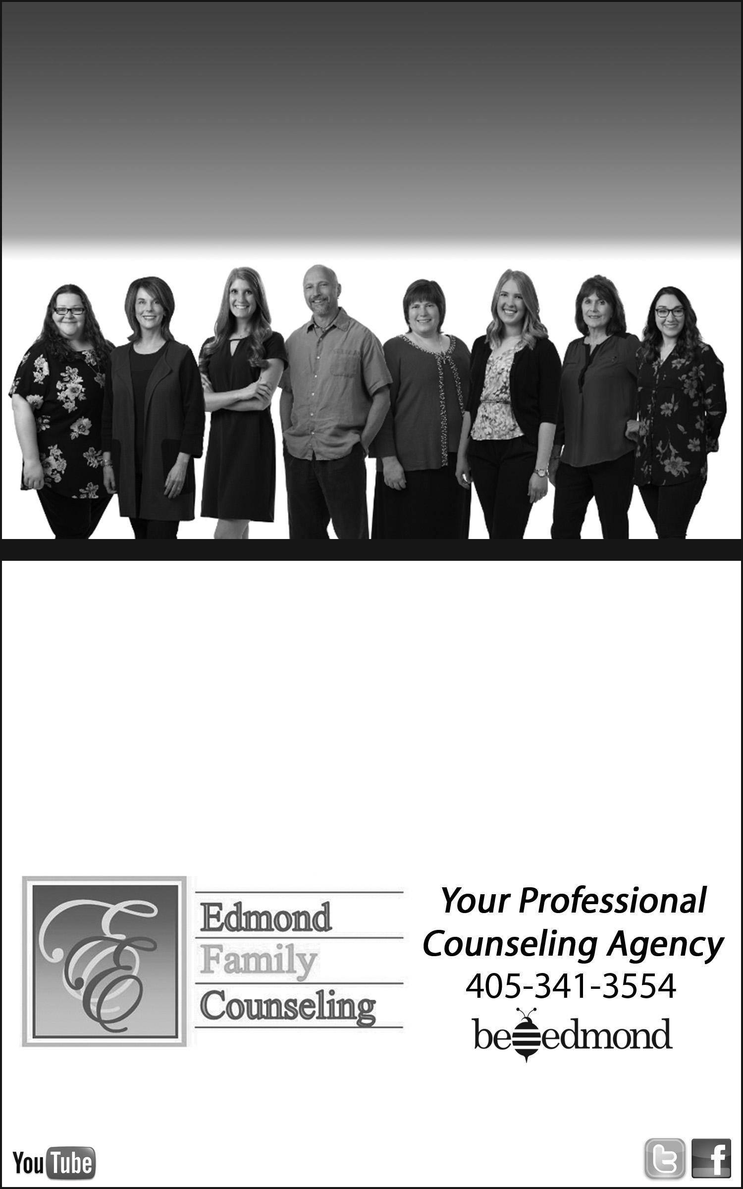 Edmond Family Counseling is a non-profit organization. We may be reached at 405-341-3554 to schedule an appointment with one of our professional counselors. Follow us on Facebook and Instagram @edmondfamilycounseling for additional information regarding mental health awareness and future programs.