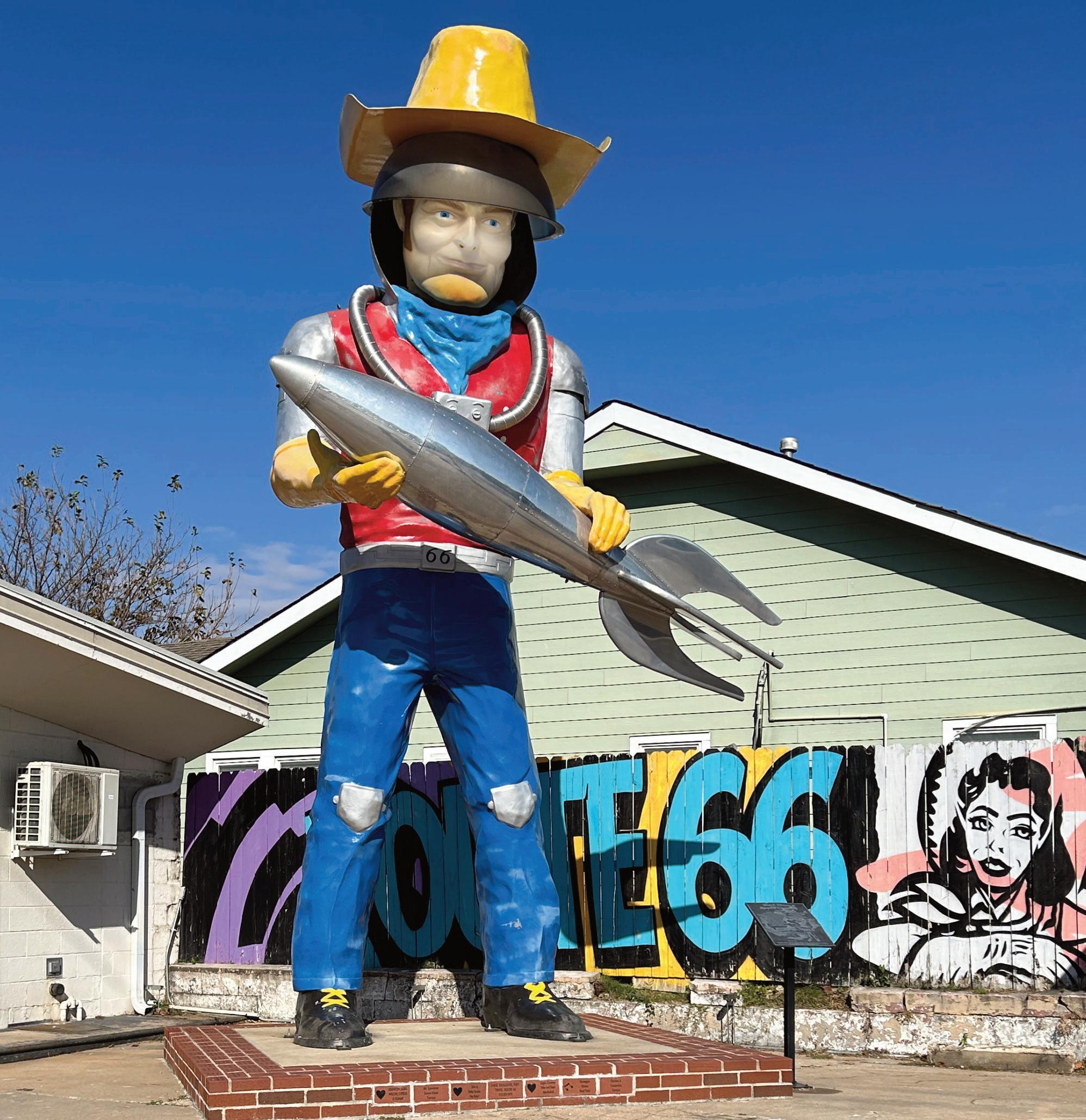 After our meeting we explored Route 66 on Tulsa’s Eleventh Street from Utica to Peoria. Entrepreneur Mary Beth Babcock has put a large stamp on the area with several shops – signaled by huge statues of the kind known as Muffler Men. Her