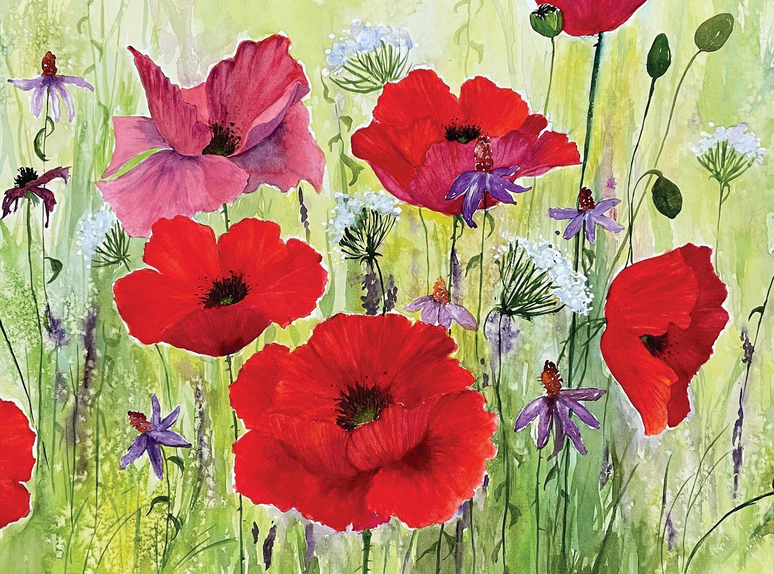 "The vibrant colors of the poppies provided a wonderful contrast with the cool colors of the grass and wildflowers in the background", said Michelle Schaefer, Festival Co-Chair. "Sandy has been invited to join our festival every year since 2011, so we are excited to be able to feature her work."