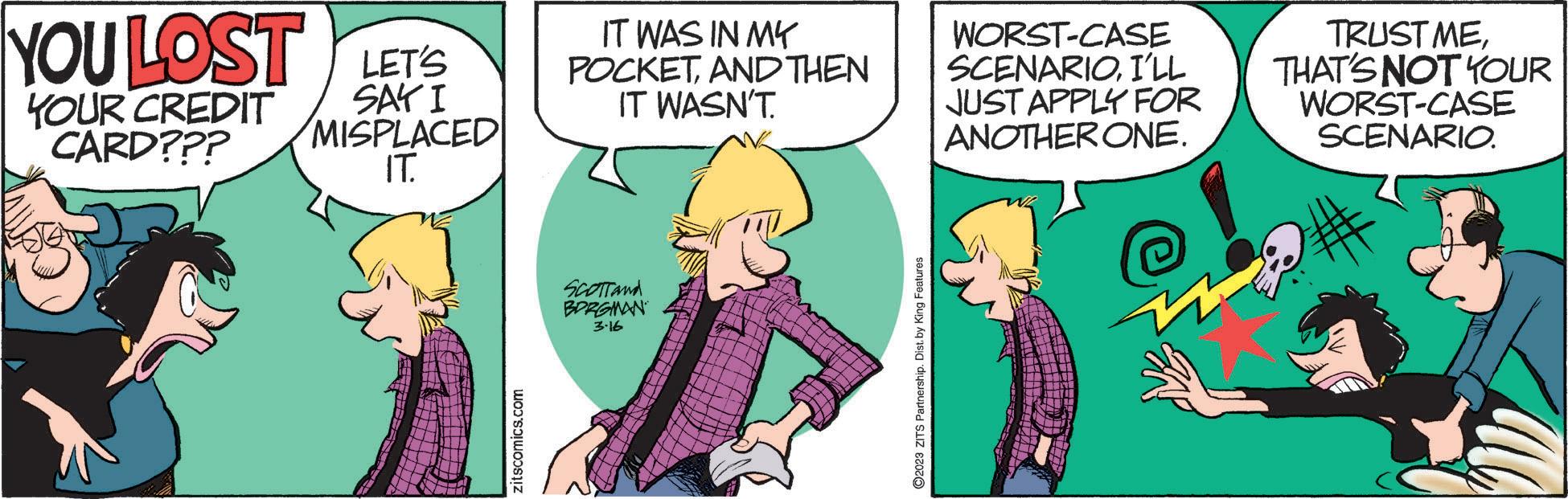 Another man walking down the street a halfhour later sees the sign and pays the guy $100. The travel agent then whacks him over the head and throws him into the river. Sometime later, the two men are floating down the river together, and the first man asks, “Do you think they’ll serve any food on this cruise?”