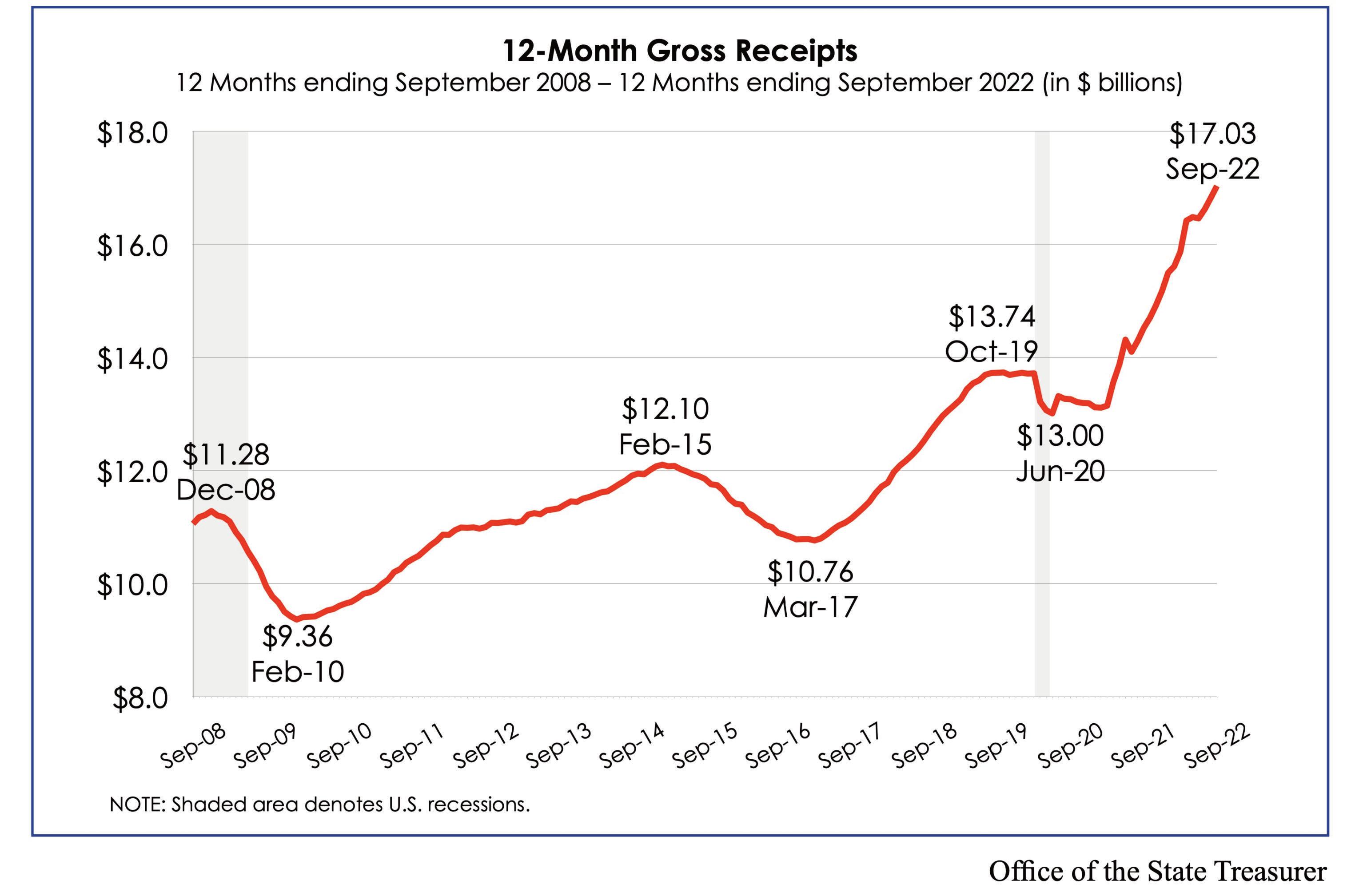 Gross Receipts to the Treasury for the past 12 months topped a landmark high of $17 billion, State Treasurer Randy McDaniel announced today.