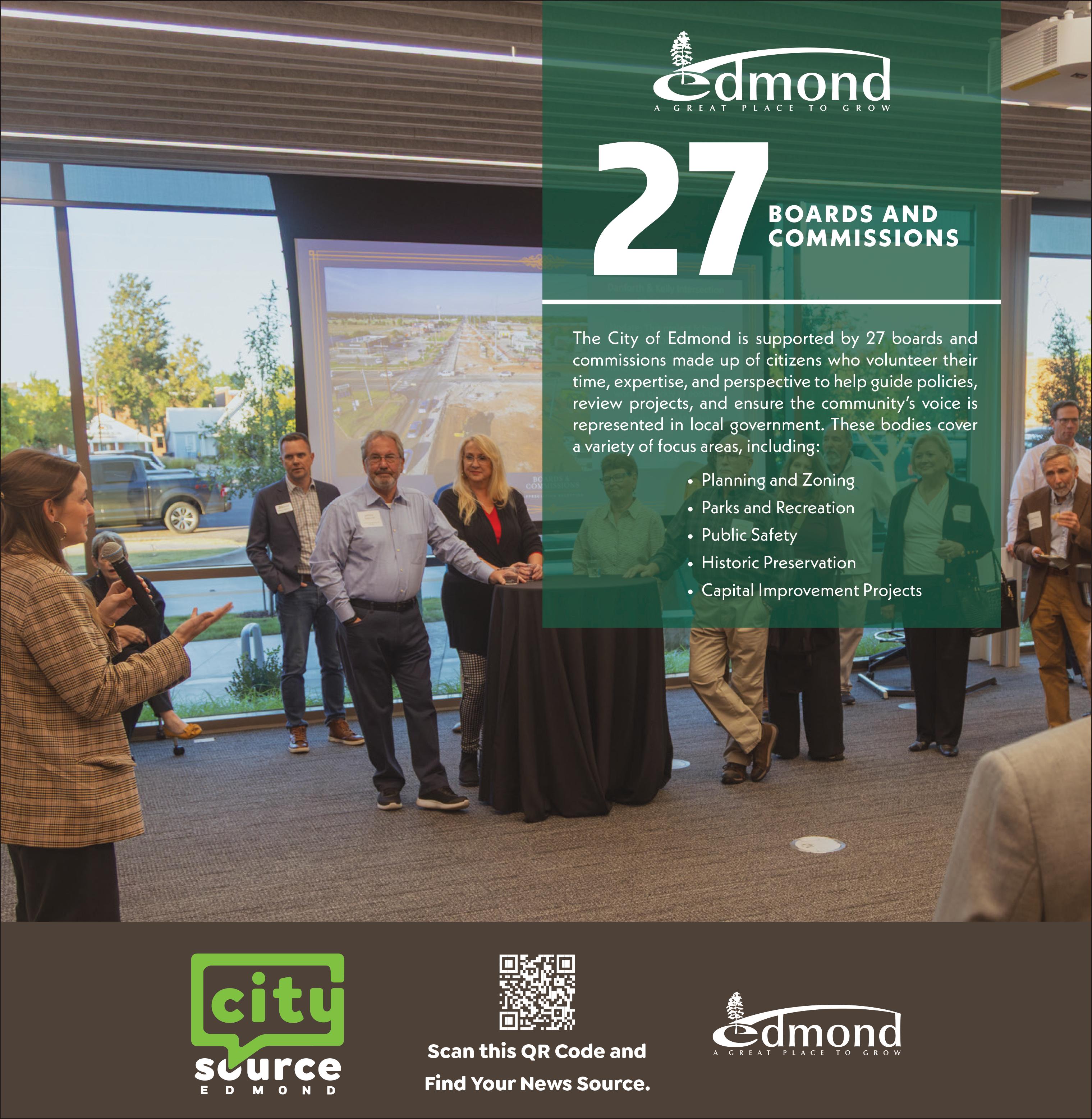 27 different bodies are integral to the future of Edmond by offering recommendations on a wide range of topics
