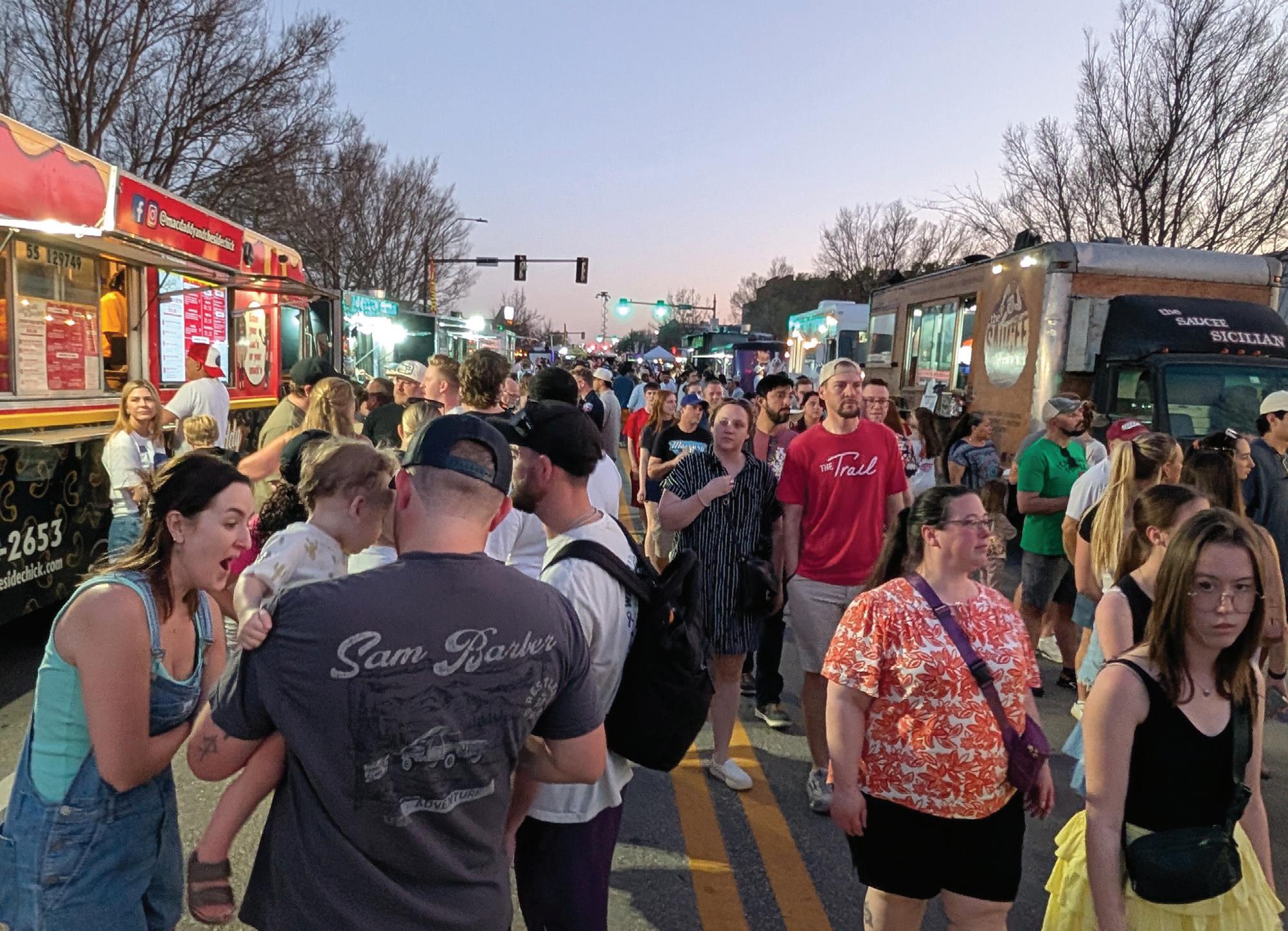 Left, Matt Moran & The Palominos perform at the Festival Marketplace. Above, a big crowd samples some of the food truck offerings.