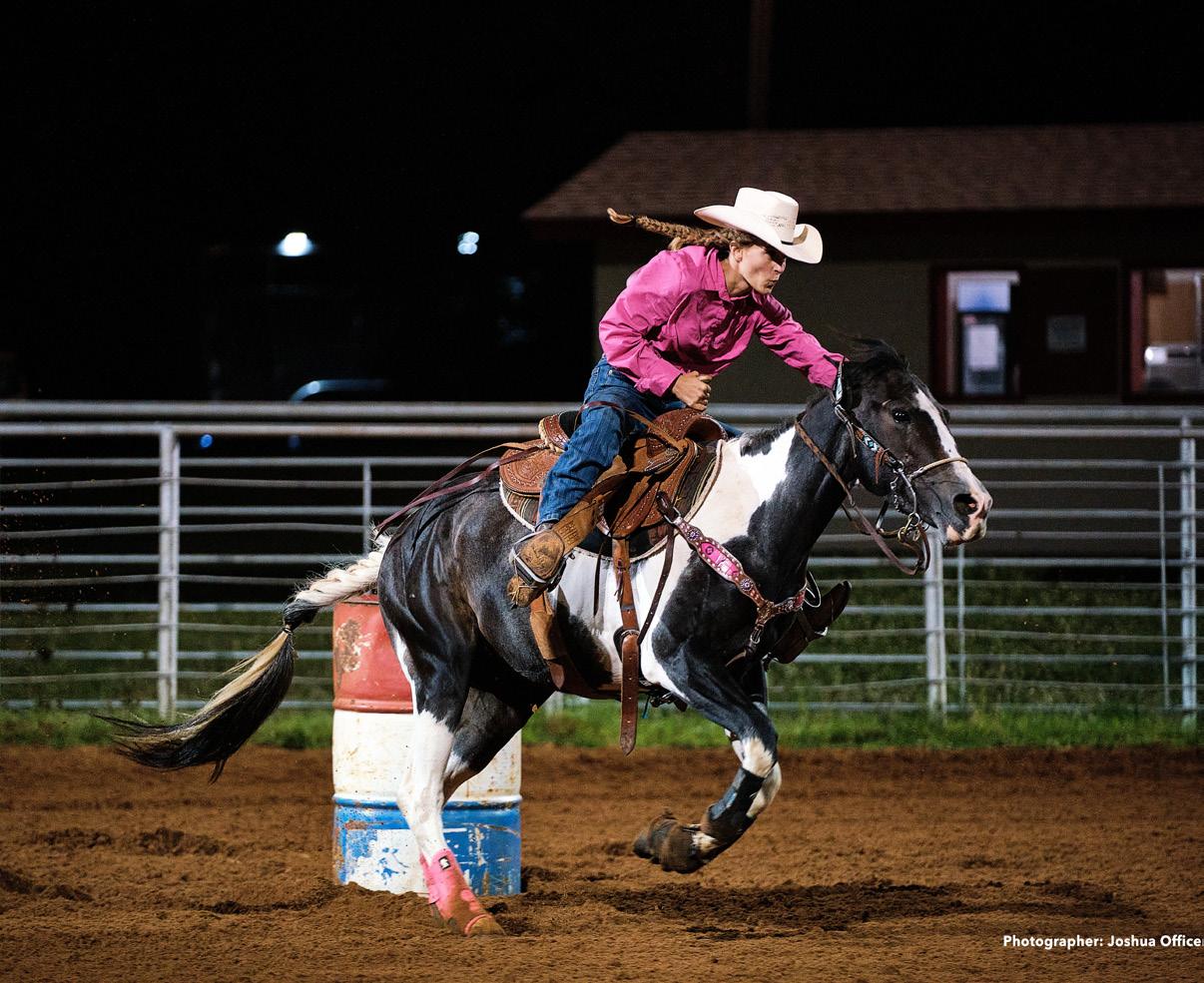 More advanced participants can compete in bull riding, steer riding, calf riding, mutton bustin’, break-away roping, team roping, goat undecorating on horse, goat tying, barrel racing, and pole bending.