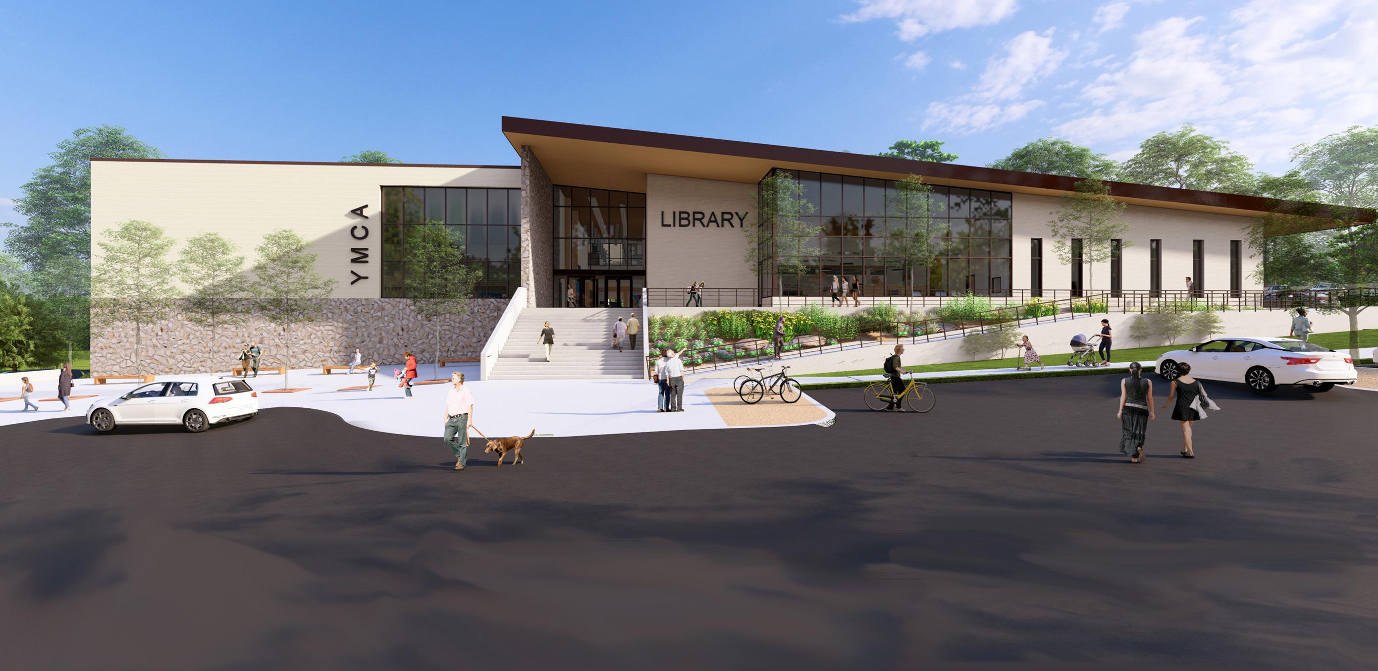 With that in mind, the solution arose to house both community resources under the same roof. The combined space will total 71,989 square feet. 52,974 square feet will be dedicated to the YMCA, 12,317 square feet to the library, and the balance of 6,607 square feet will be joint space to include the entrance lobby and meeting rooms.