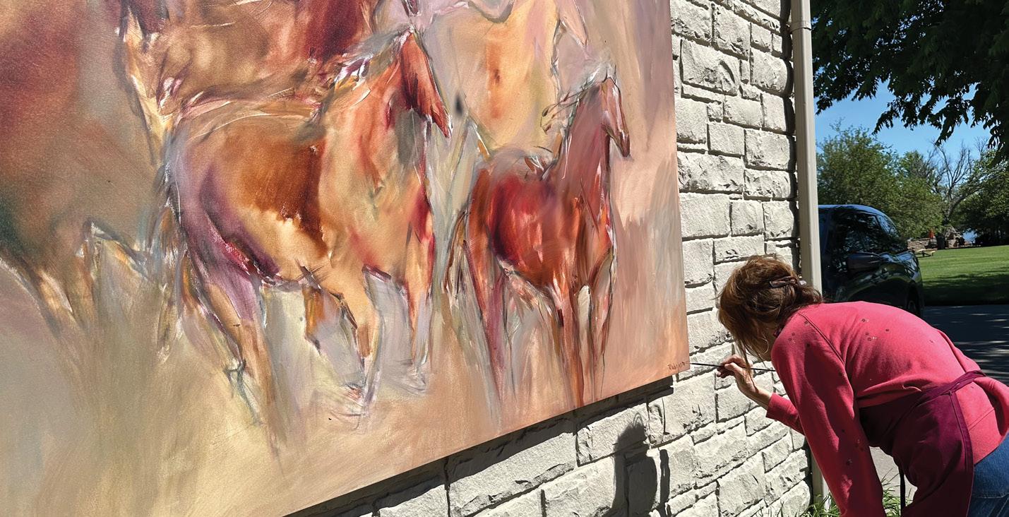 Horses were a natural subject choice for her. A rancher’s daughter from Hollis, Oklahoma, she has known and loved horses her whole life. “As a child I painted everything I saw—flowers, bridges, trees,” she says. “By college, I focused on figures, landscapes, and horses.” Over time, horses became her primary subject.
