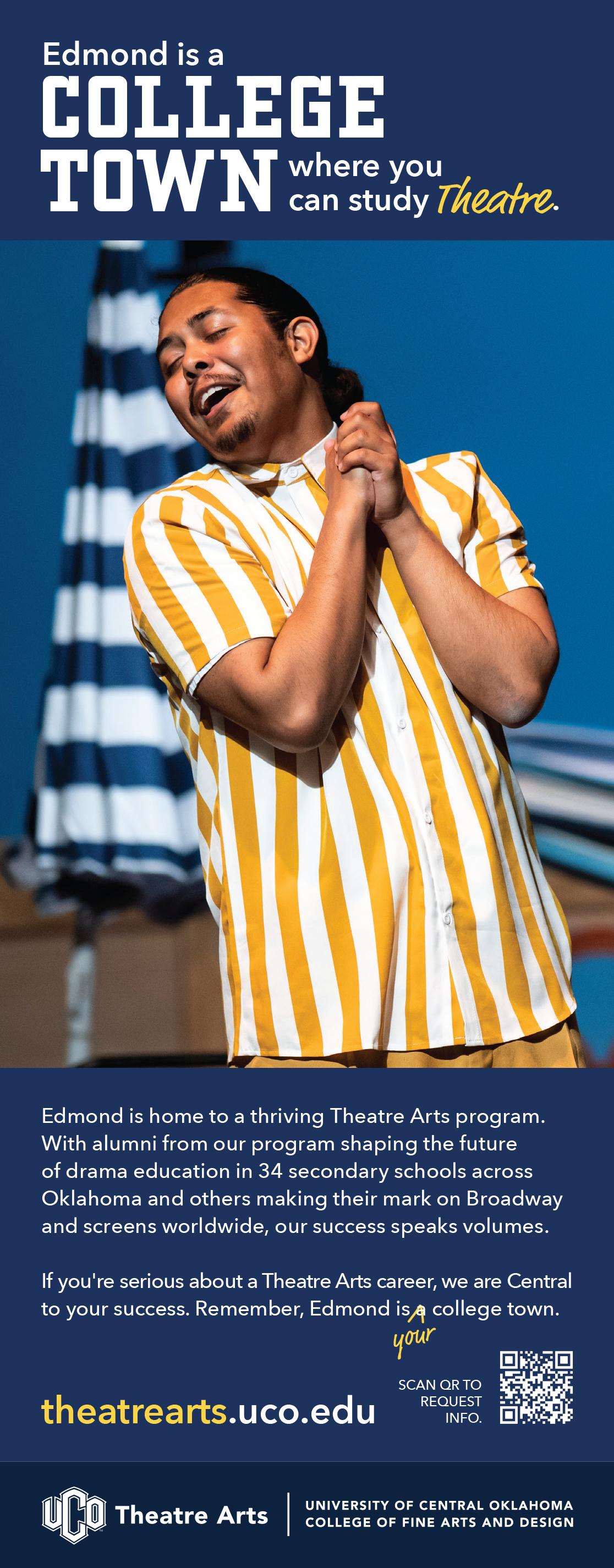 8 ADVERTISING l 405-301-3926 l laura@ edmondoutlook.com MAILED MONTHLY TO OVER 50,000 HOMES IN THE EDMOND AREA Articles and advertisements in the Outlook do not necessarily reflect the opinions of the magazine or Back40 Design. Back40 Design does not assume responsibility for statements made by advertisers or editorial contributors. The acceptance of advertising by the Outlook does not constitute endorsement of the products, services or information. We do not knowingly present any product or service that is fraudulent or misleading in nature. The Outlook assumes no responsibility for unsolicited materials. PUBLISHER Dave Miller l PRODUCTION MANAGER Alison Miller l ACCOUNT EXECUTIVE / EDITOR Laura Beam l GRAPHIC DESIGN Anne Richardson PHOTOGRAPHY Marshall Hawkins sundancephotographyokc.com l DISTRIBUTION Edmond Outlook is delivered FREE by direct-mail to over 50,000 Edmond area homes. 2513 S. Kelly Ave., Suite 120, Edmond, OK 73013 l 405-341-5599 l edmondoutlook.com l info@edmondoutlook.com JUNE 2024 Volume 20, Number 6 l Edmond Outlook is a publication of Back40 Design, Inc. l © 2024 Back40 Design, Inc. 12 Features 8 Route 66 Blue Hippo Festival 10 The Big Biscuit 12 Terrance the Octopus 16 UCO Honorary Degree 18 Unnecessary Action Hero 20 Chisholm Creek Restaurants 26 Painting Edmond Purple Business 22 Wells Fargo: Jeff Carel 24 INTEGRIS Edmond Columns 7 In Other Words with Dave 28 Louise Tucker Jones 30 A LOOK Back: Edmond's First Pool 26