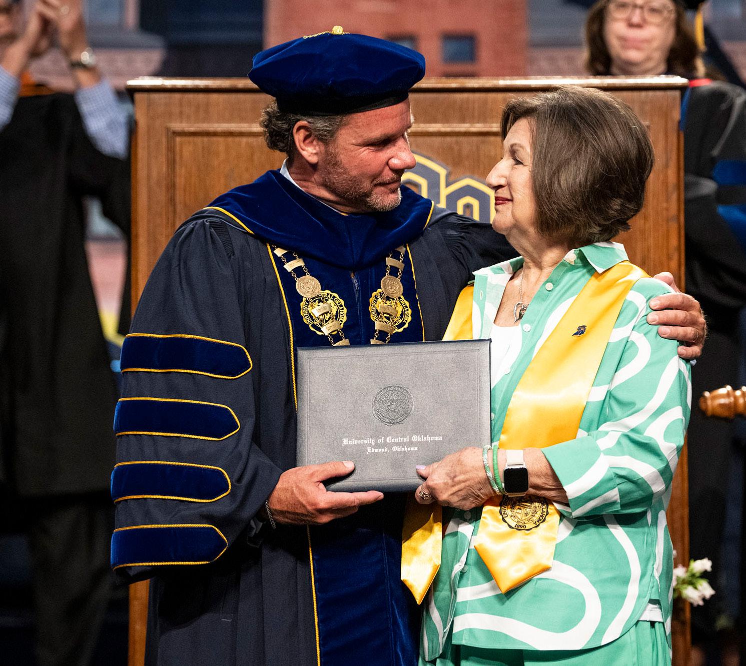 Wilma Hamilton receives her honorary degree from UCO President Todd Lamb