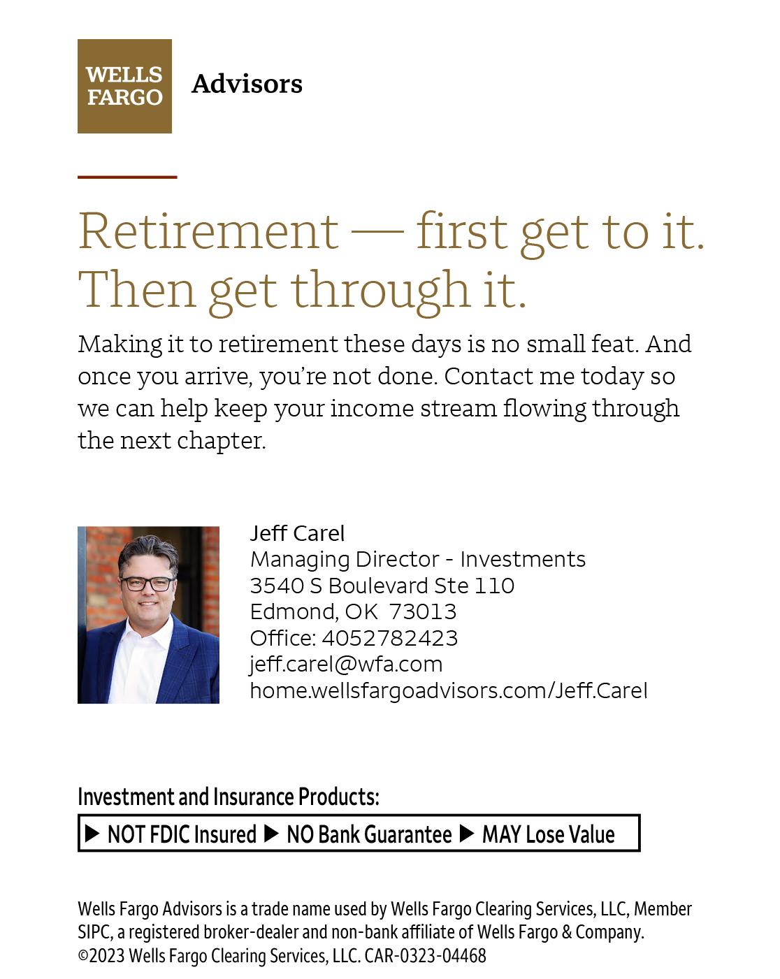 Jeff Carel’s Edmond office is located at 3540 S. Boulevard, Suite 110. Contact him at (405) 844-4250 or online at home.wellsfargoadvisors.com/Jeff.Carel.