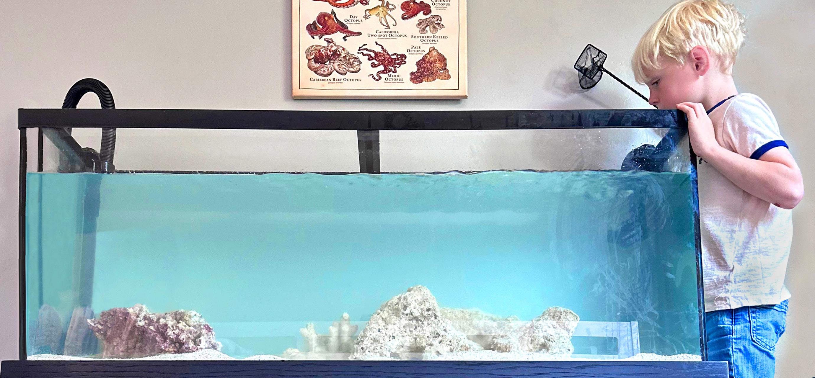 For six months, nine-year-old Cal Clifford’s bedroom was gently lit by the tank of his eight-legged friend, Terrance. The California two-spot octopus passed on Earth Day in April, but left the light on – plus fifty bimac babies – to keep Cal company.