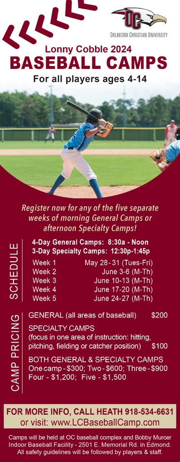 8 ADVERTISING l 405-301-3926 l laura@edmondoutlook.com MAILED MONTHLY TO OVER 50,000 HOMES IN THE EDMOND AREA Articles and advertisements in the Outlook do not necessarily reflect the opinions of the magazine or Back40 Design. Back40 Design does not assume responsibility for statements made by advertisers or editorial contributors. The acceptance of advertising by the Outlook does not constitute endorsement of the products, services or information. We do not knowingly present any product or service that is fraudulent or misleading in nature. The Outlook assumes no responsibility for unsolicited materials. PUBLISHER Dave Miller l PRODUCTION MANAGER Alison Miller l ACCOUNT EXECUTIVE / EDITOR Laura Beam l GRAPHIC DESIGN Anne Richardson PHOTOGRAPHY Marshall Hawkins sundancephotographyokc.com l DISTRIBUTION Edmond Outlook is delivered FREE by direct-mail to over 50,000 Edmond area homes. 2513 S. Kelly Ave., Suite 120, Edmond, OK 73013 l 405-341-5599 l edmondoutlook.com l info@edmondoutlook.com MAY 2024 Volume 20, Number 5 l Edmond Outlook is a publication of Back40 Design, Inc. l © 2024 Back40 Design, Inc. 16 Features 8 Stephenson Park: New & Nostalgic 10 Eddie’s Opening at Chisholm Creek 12 Spider-Man Filmmakers 16 Organic Backyard Farming 18 Edmond Cowboy Models in Paris 20 Responding to First Responders 26 City Strives to Improve Traffic Business 22 Eve's and Lulu D's Salon and Boutique 24 Align Interventional Pain Columns 7 In Other Words with Dave 28 Louise Tucker Jones 30 A LOOK Back: Stephenson Park 20