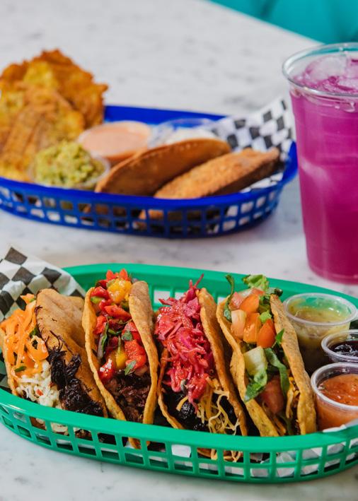 Inspired by Ruben’s mom, who, as a child, loved the fried tacos of a beach vendor in Puerto Rico and later began making her own, Kristal and Ruben started The Fried Taco food truck in 2016. In 2019, they opened their first restaurant in Midtown OKC, and in February 2022 were excited to open in Edmond where they live. Kristal says the location at the Icehouse Project, with multiple restaurants and an enclosed courtyard, was the reason they opened in Edmond. “As the parents of four children, we know it’s not easy to have a ‘nice meal out’ because you’re trying to keep the kids from being bored,” Kristal admits. “Here, parents can sit outside and have adult conversations while keeping an eye on the kids who are having a blast climbing on the giant grasshopper!”