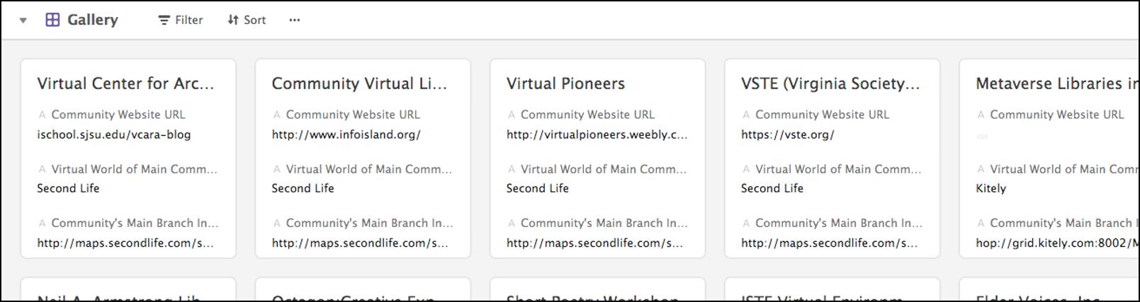 Fig. 12. Virtual World Communities Collection - Gallery View. (2017).