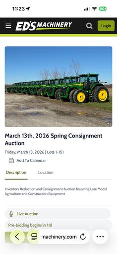 Equipment may be inspected at Ed’s Machinery on Monday, March 9 through Friday, March 13. The yard will be open from 7 AM - 5 PM at 17920 US Hwy 136, Memphis, MO 63555