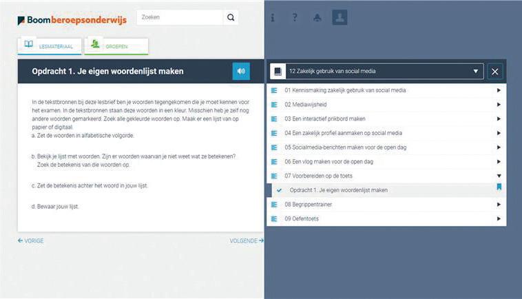 Via de digitale leeromgeving van Boom beroepsonderwijs kunnen docenten en leerlingen altijd en overal bij het lesmateriaal, opdrachten en toetsen. Daarnaast biedt deze leeromgeving te allen tijde inzicht in de voortgang en resultaten. Het enige wat je nodig hebt, is een pc, laptop, tablet of mobiele telefoon waarmee je toegang hebt tot het internet. De combinatie van interactief lesmateriaal en functionaliteiten die optimaal afgestemd zijn op de persoonlijke leerbehoeften, leidt tot een optimaal leerrendement.