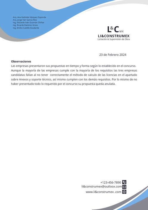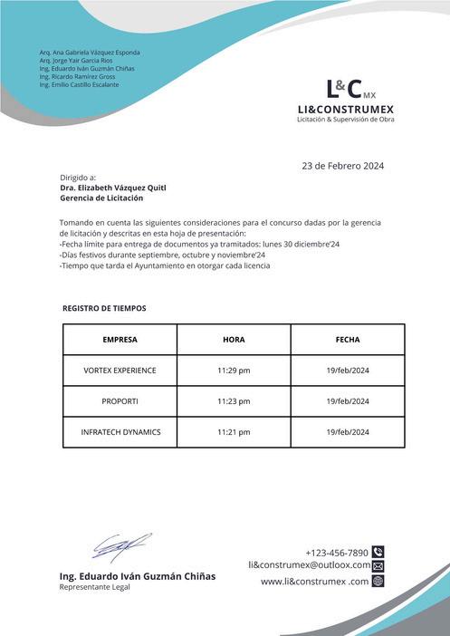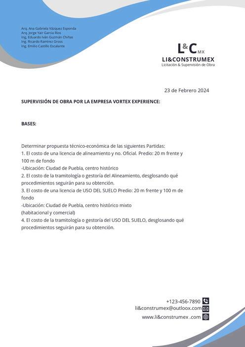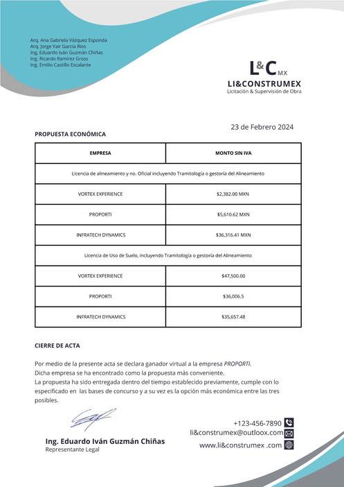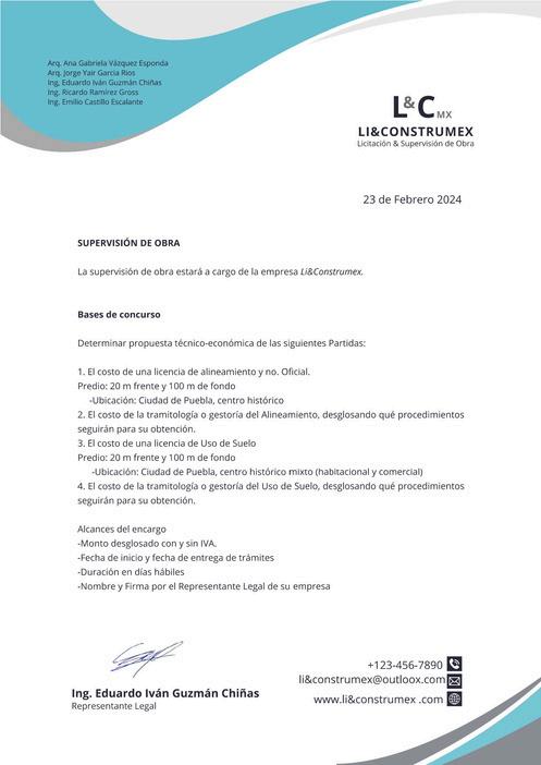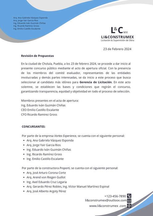 In this project that was given by the Construction Administration course, an example of a competition had to be made with all the necessary documents. Construction tenders are a common practice to ensure competition and transparency in the selection of contractors, as well as to obtain the best offers and conditions to carry out construction projects.