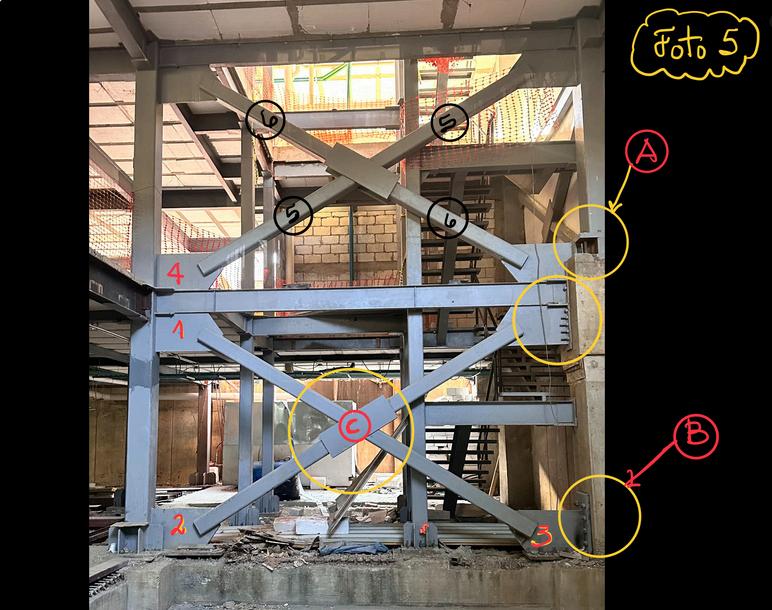 Se puede ver en la foto el contraventeo. El contraventeo es una técnica importante en la construcción que se utiliza para reforzar y estabilizar estructuras contra fuerzas laterales como el viento o los movimientos sísmicos, mejorando así su resistencia y durabilidad.