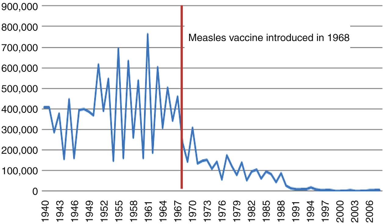 FIGURE 1.1 Reported measles case in the United Kingdom from 1940 to 2006. (Source: Public Health England.)