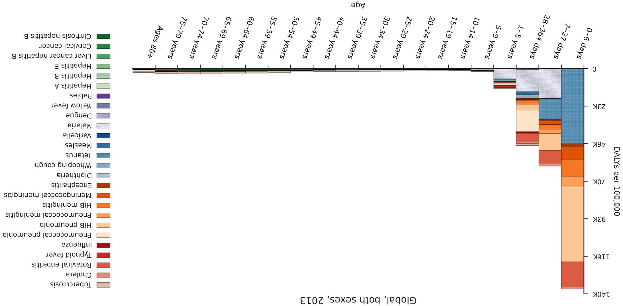 4 Global all ages DALYs rate (per 100,000) for VPD current causes by age for both sexes combined in 2013.