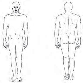 Using the drawing on the right, please mark the area(s) where you feel pain. Mark an “E” if the source of the pain is external or “I” if it is internal.. If the source of the pain is both internal, please mark “B”.
