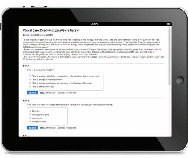 • NEW AND E XPANDED MasteringMicrobiology® includes: NEW Interactive Microbiology, a dynamic suite of interactive tutorials and animations that teach key concepts in the context of a clinical setting. Students actively engage with each topic and learn from manipulating variables, predicting outcomes, and answering formative and summative assessments. Topics include Operons; Complement; Biofilms and Quorum Sensing; Antibiotic Resistance, Mechanisms; Antibiotic Resistance, Selection; and more.