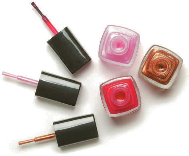 Nail art—decals, jewels, metallic strips, and hand-drawn images— were extremely popular. Monomer liquid and polymer powder nail formulations continued to improve in terms of ease of application and longevity for wearers.