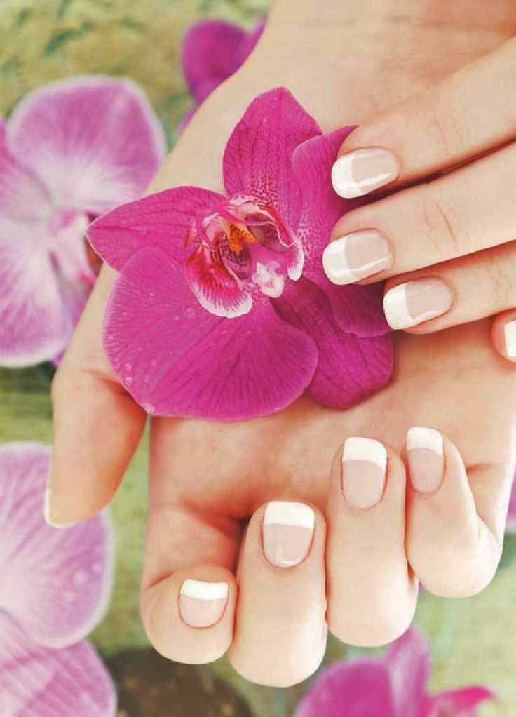 attached with model airplane glue to instantly extend nail length. Je Pink invented the French manicure (clear nail bed with white tip) and Ridge ller (a product that makes ridged nails appear smooth). Squared nail tips came into vogue.
