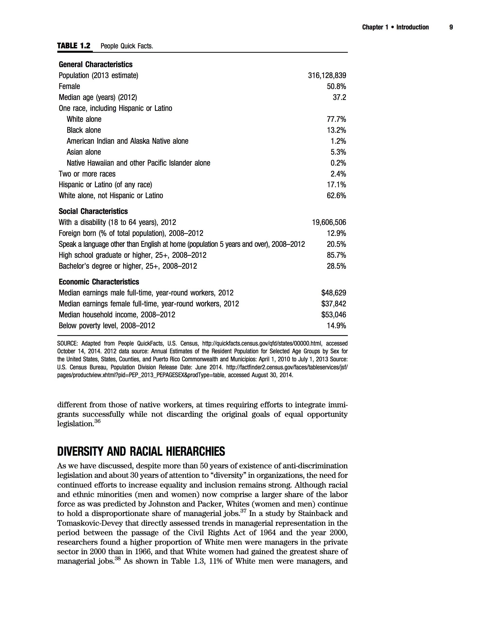 Obama's election in 2008 and re-election in 2012 led to claims of a "post-racial" America, which are far from being realized, as evident, in part, by the race-based hatred and criticism directed toward him. As I began writing the third edition and once again investigating the status of each racial and ethnic group, women and men, people with disabilities, and other non-dominant group members, it became even more clear that far from being "post-racial," the need for diversity research and education remains strong. Blacks continue to have nearly twice the unemployment rate of Whites a problem that persists even at the same education levels, and that has been the case for many decades. Racial profiling and police brutality against African American men, women, and children, often with impunity, continue. The male-female wage gap remains tenacious, even though women now earn more college and graduate degrees than men earn. Sexual harassment, discrimination, and segregation continue to be severe and pervasive problems for working women. For every non-dominant group, some disparities persist, and, in some cases, have worsened since the first and second editions of Diversity in Organizations. Anger, fear, and hatred pervade the news, social media, and many people's psyches, and perceptual and attitudinal gaps about race relations, inequality, and discrimination remain. On the other hand, increasing numbers of people are supporting and working for equality and inclusion. New legislation, social media, and innovative ways to get around barriers, such as using Title VII in cases of sexual orientation discrimination, are helping bring about positive change. Increasing numbers of organizational leaders seem to understand the power in diversity, and the business, moral, and ethical reasons to truly pursue inclusion. There is still much work to be done, but there is still progress amid retrenchment and there is still hope for a better, fairer, more just future for all of us, whose futures and hopes are inextricably intertwined. "If we go down, we go down together," is now clearer than ever. 1 1